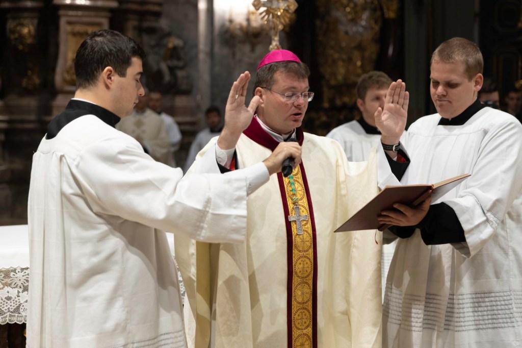 Erre az Egyháztól kapott küldetésre Fekete Szabolcs Benedek szombathelyi segédpüspök avatott fel minket: Csupor Mártont és Németh Norbertet (Szombathelyi Egyházmegye), valamint Hasap Ferencet (Székesfehérvári Egyházmegye).
