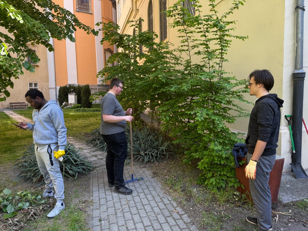 2026. április 18-án, szombat délelőtt a szeminárium növendékeinek egy része a Prefektus atyával és a ház gondnokával, Nándival, közösen munkálkodott a kert szépítésén. A cél az volt, hogy a terület még méltóbb és rendezettebb pihenőhelyül szolgálhasson a közösség számára.